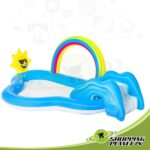 This Bestway Swimming Pool is perfect for hours of fun under the sun! With a detachable slide and a cushioned landing area, kids will be begging to go outside and play. S0! Attach a garden hose and water will spray out of the sun, adding an extra splash to playtime. When the fun is done, simply drain the water through the drain valve and fold it up for easy storage. Therefore! Perfect for kids, ages 2+ Detachable slide with a cushioned landing area Built-in water sprayer adds a splash of fun to play time Release pool water through the easy-to-use drain valve Extra-large splash pool area Built-in water sprayer attaches to garden hose Removable slide with tie ropes and built-in grommets Cushioned floor provides soft landing Colorful rainbow arch and friendly sun decorations Easy-to-use drain. So! Get one today from Shopping Planet Pk